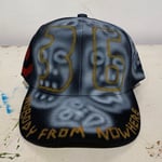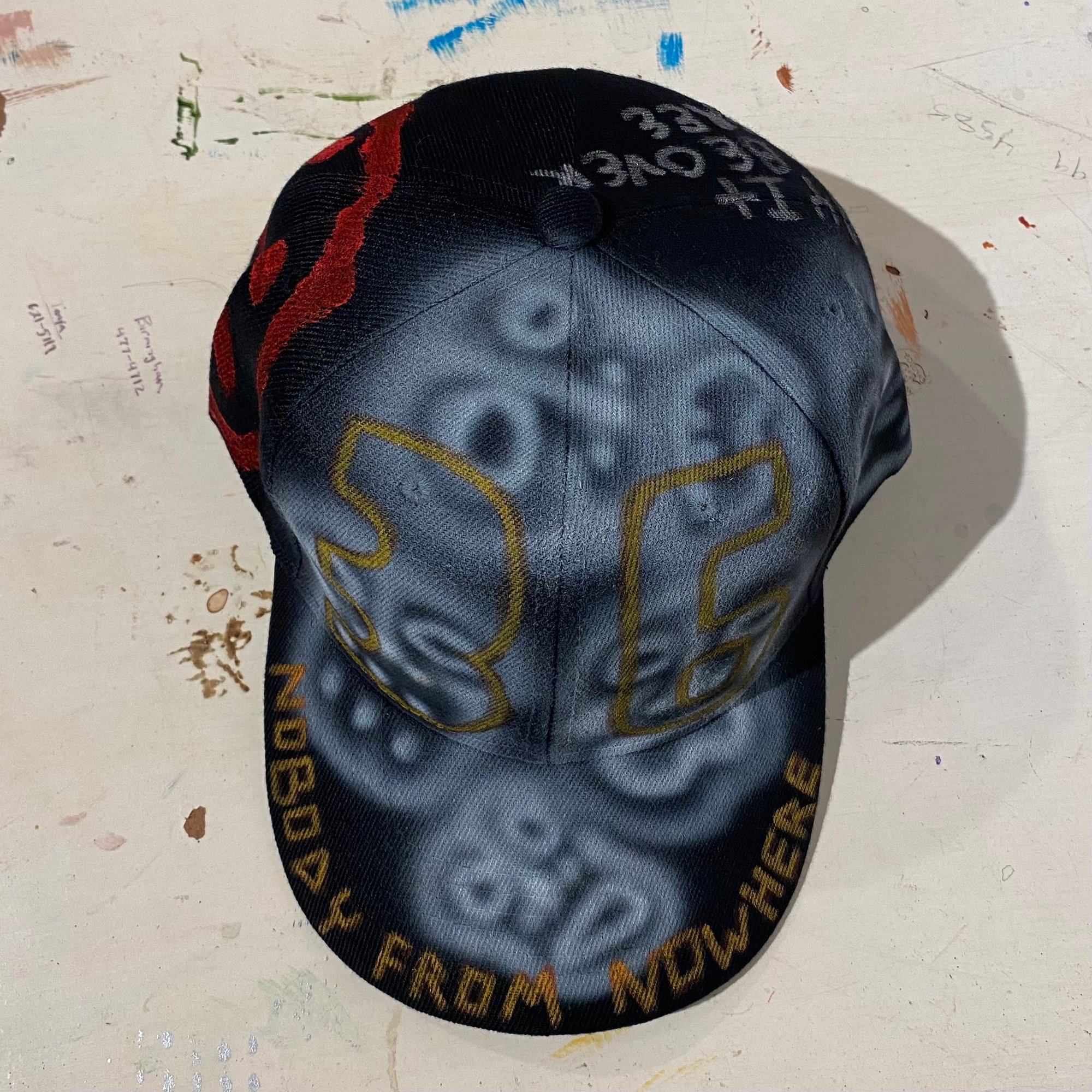 ORIGINAL ARTWORK ON 100% ACRYLIC VELCRO STRAP BACK HAT. ONE SIZE FITS ALL.